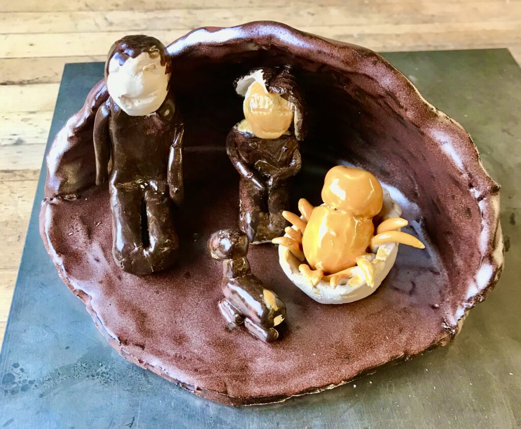 Im Materialpreis, der nach gebrannten kg Ton berechnet wird, ist das nachträgliche Glasieren mit Transparentglasur – und nochmaliges Brennen – durch uns inbegriffen. Sie können Ihr Werk also gebrauchsfertig max. 2 Wochen nach dem Kurs abholen.
