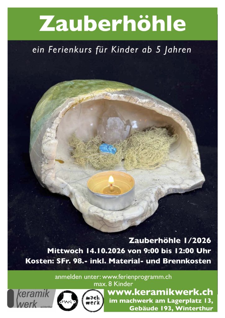 Kursinhalt: Wir bauen unsere eigene Zauberhöhle aus Ton. In ihr kann ein Zwerg wohnen, ein Drache schlafen oder eine Zauberin ihre magischen Dinge aufbewahren. Vor der Höhle bekommt eine Kerze ihren Platz und sorgt für Licht und Wärme, wenn es dunkel wird.