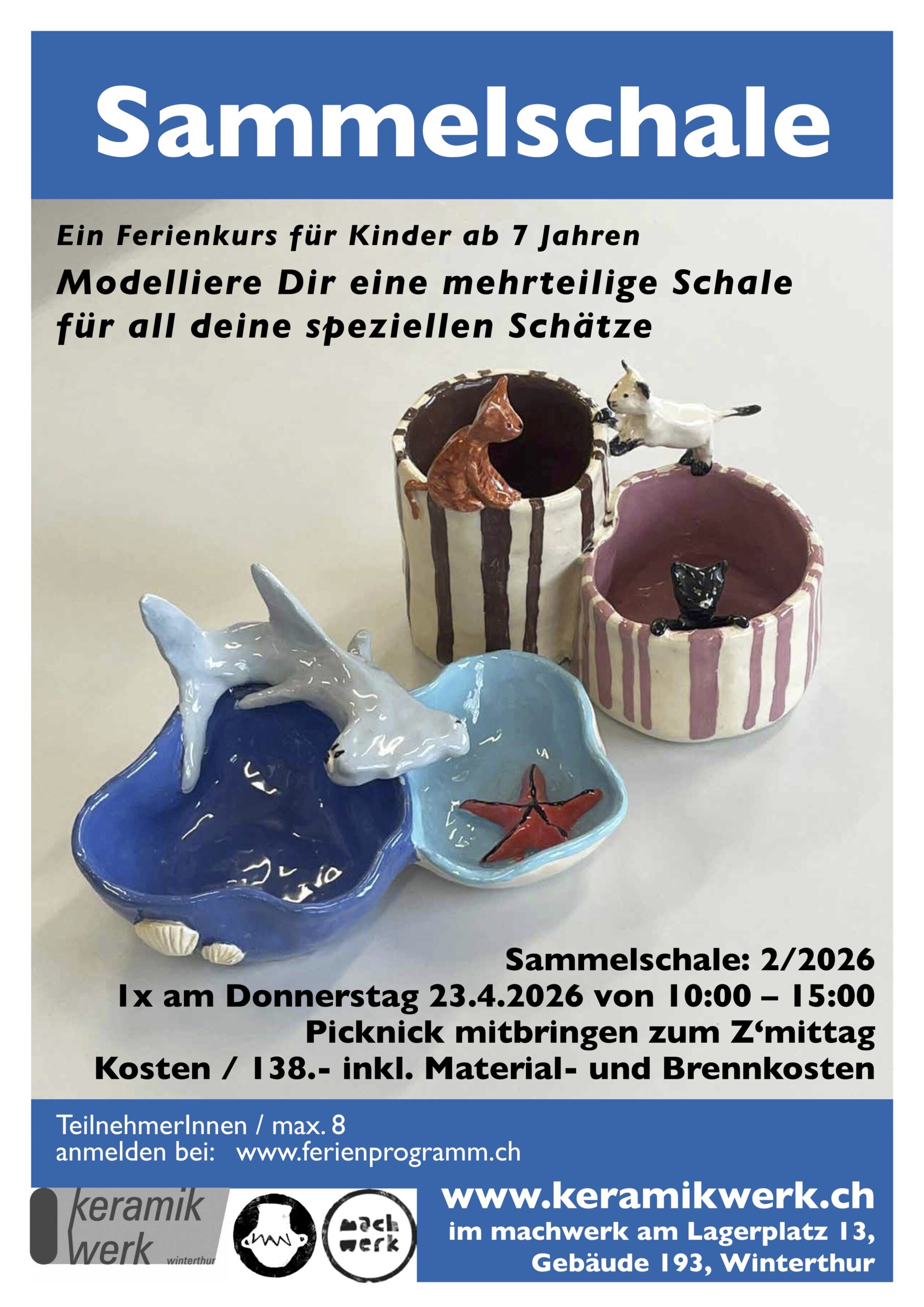 Ferienkurs Sammelschale 2/26 Kalender Zum Kalender hinzufügen Zu Timely-Kalender hinzufügen Zu Google hinzufügen Zu Outlook hinzufügen Zu Apple-Kalender hinzufügen Einem anderen Kalender hinzufügen Als XML exportieren Wann: 23. April 2026 um 10:00 – 15:00 2026-04-23T10:00:00+02:00 2026-04-23T15:00:00+02:00 Wo: KeramikWerk Kontakt: Website der Veranstaltung