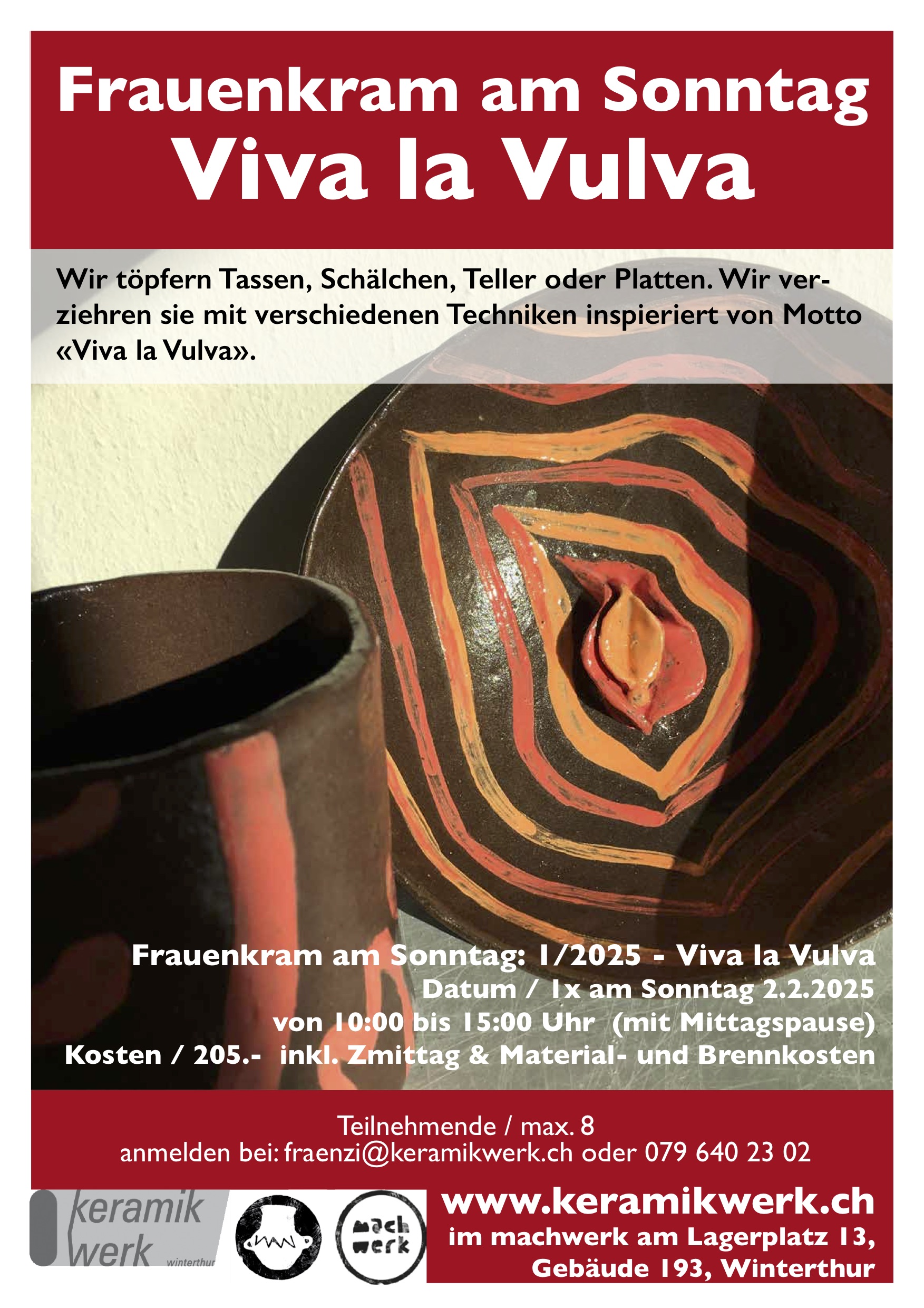 Frauenkram 1/25 – Viva la Vulva Kalender Zum Kalender hinzufügen Zu Timely-Kalender hinzufügen Zu Google hinzufügen Zu Outlook hinzufügen Zu Apple-Kalender hinzufügen Einem anderen Kalender hinzufügen Als XML exportieren Wann: 2. Februar 2025 um 10:00 – 15:00 2025-02-02T10:00:00+01:00 2025-02-02T15:00:00+01:00 Wo: KeramikWerk Kontakt: Website der Veranstaltung