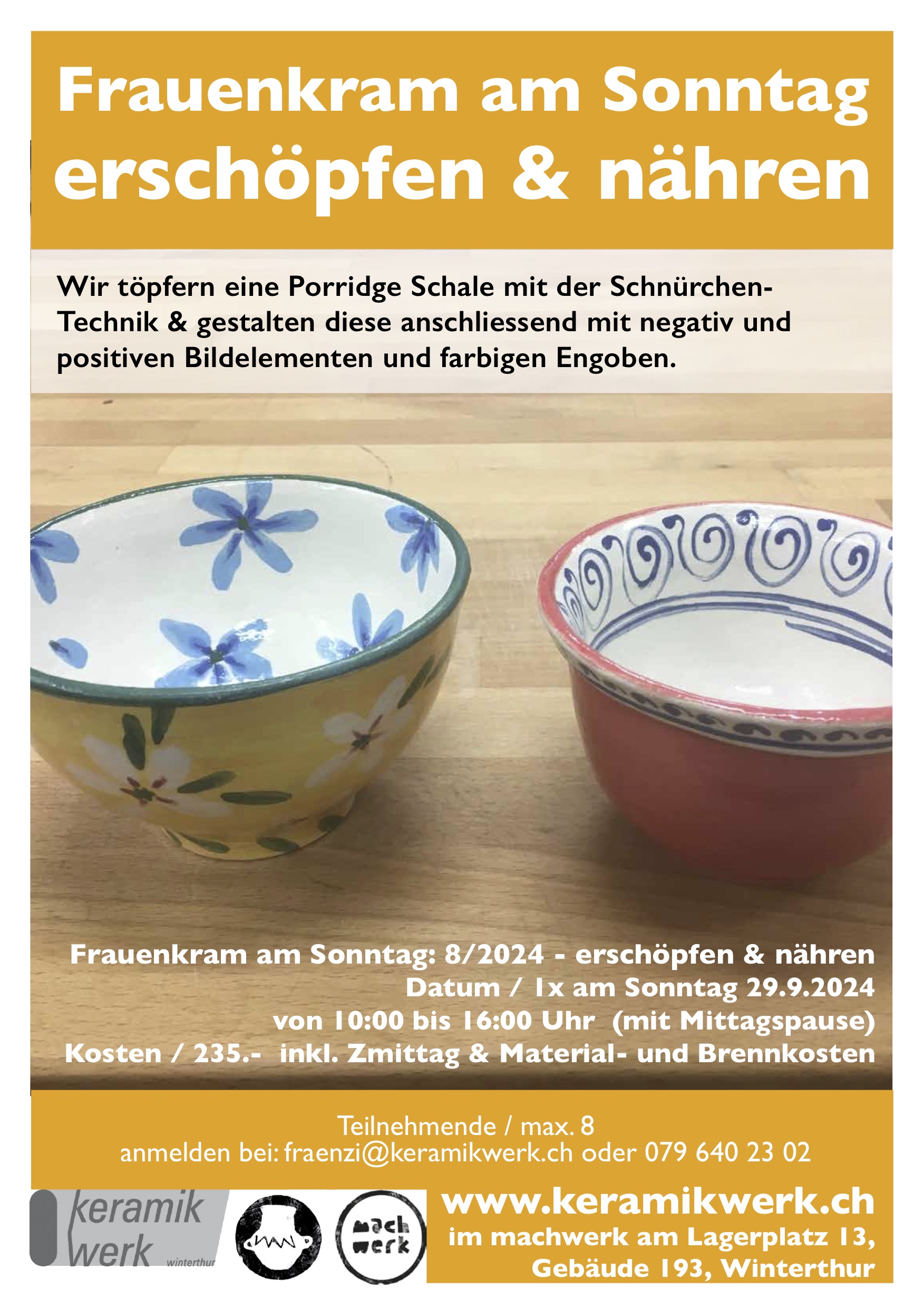 Frauenkram 8/24 erschöpfen Kalender Zum Kalender hinzufügen Zu Timely-Kalender hinzufügen Zu Google hinzufügen Zu Outlook hinzufügen Zu Apple-Kalender hinzufügen Einem anderen Kalender hinzufügen Als XML exportieren Wann: 29. September 2024 um 10:00 – 16:00 2024-09-29T10:00:00+02:00 2024-09-29T16:00:00+02:00 Wo: KeramikWerk Kontakt: Website der Veranstaltung