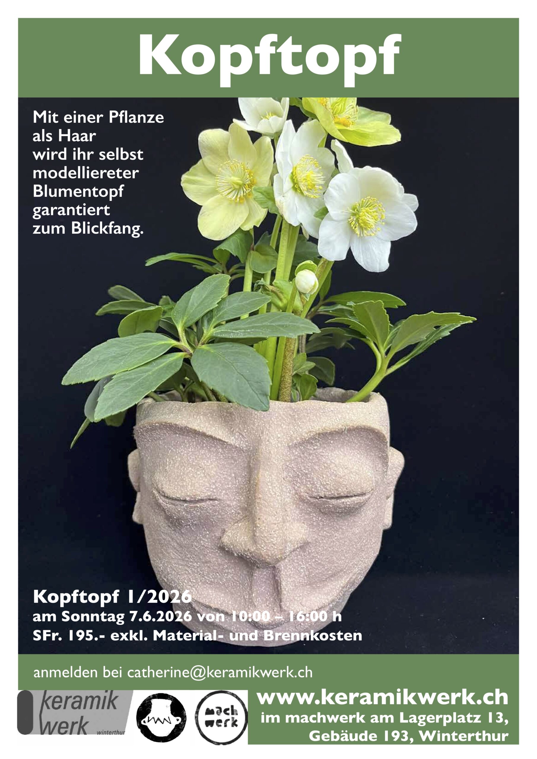 Kopftopf 1/26 Kalender Zum Kalender hinzufügen Zu Timely-Kalender hinzufügen Zu Google hinzufügen Zu Outlook hinzufügen Zu Apple-Kalender hinzufügen Einem anderen Kalender hinzufügen Als XML exportieren Wann: 7. Juni 2026 um 10:00 – 16:00 2026-06-07T10:00:00+02:00 2026-06-07T16:00:00+02:00 Wo: KeramikWerk Kontakt: Website der Veranstaltung