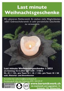 Last minute Weihnachtsgeschenke töpfern Kalender Zum Kalender hinzufügen Zu Timely-Kalender hinzufügen Zu Google hinzufügen Zu Outlook hinzufügen Zu Apple-Kalender hinzufügen Einem anderen Kalender hinzufügen Als XML exportieren Wann: 10. Dezember 2023 um 14:00 – 17:00 2023-12-10T14:00:00+01:00 2023-12-10T17:00:00+01:00 Wo: KeramikWerk