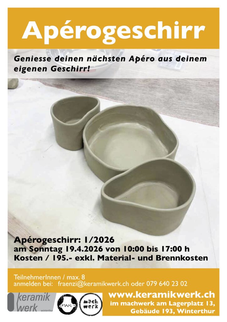 Anmeldung per Mail an: Fränzi Iff fraenzi(at)keramikwerk.ch