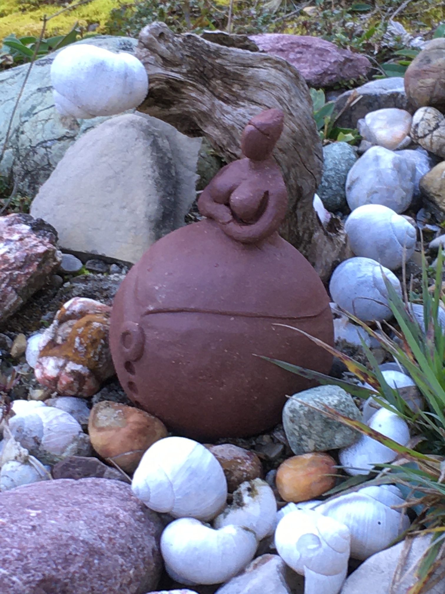 Wir gestalten uns eine eigene Erdmutter. Ein kleine Hüterin oder Wächterin, mit grossem Schossraum. Sie steht für die archaisch-archetypische Mutterkraft, die das Leben nährt, hütet und beschützt.