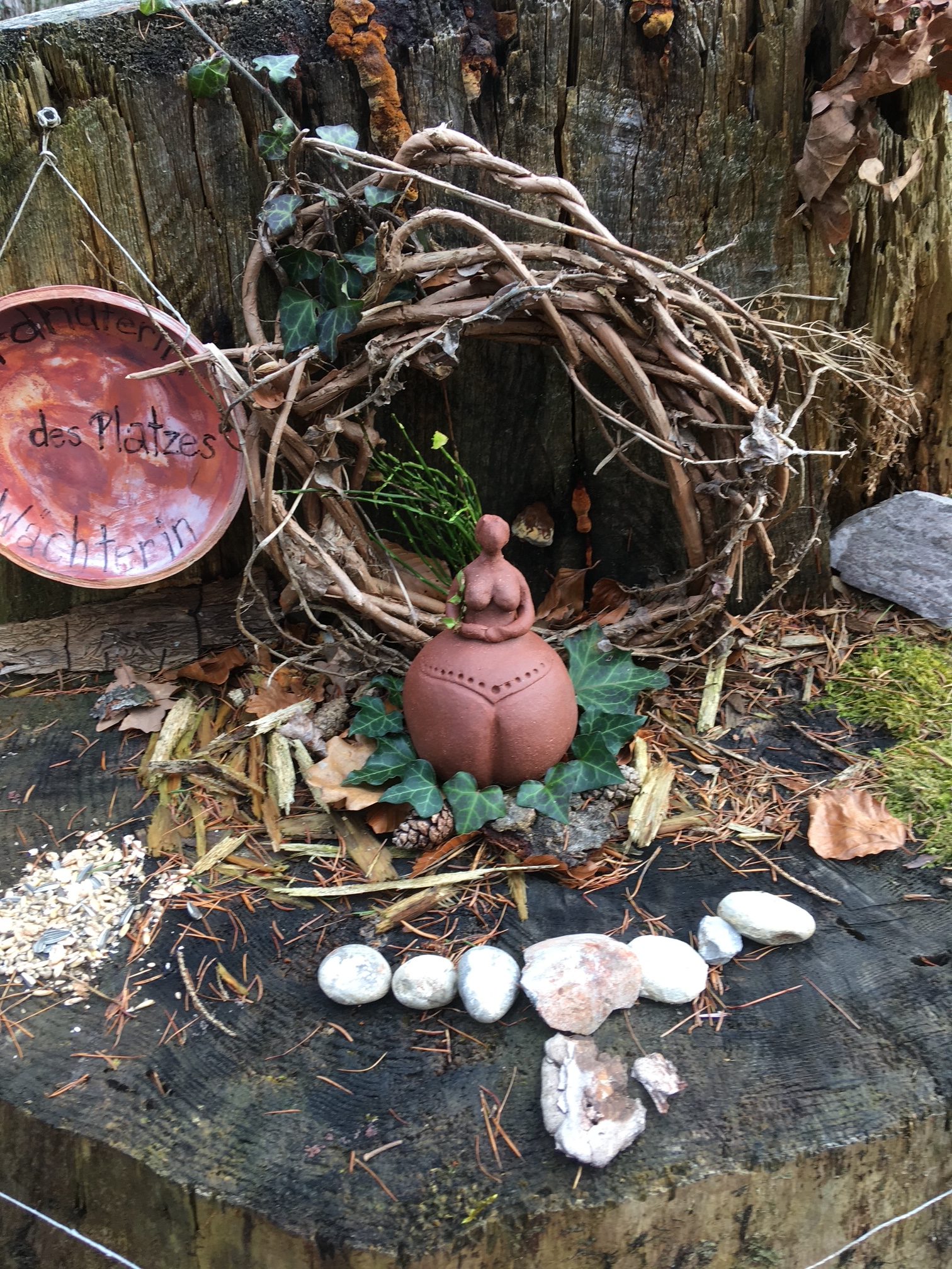 Diese kleine Figur darf später bei dir im Wohnraum, im Garten oder irgendwo in der Natur einen würdigen Platz bekommen, um diesen Ort zu schützen und zu energetisieren.