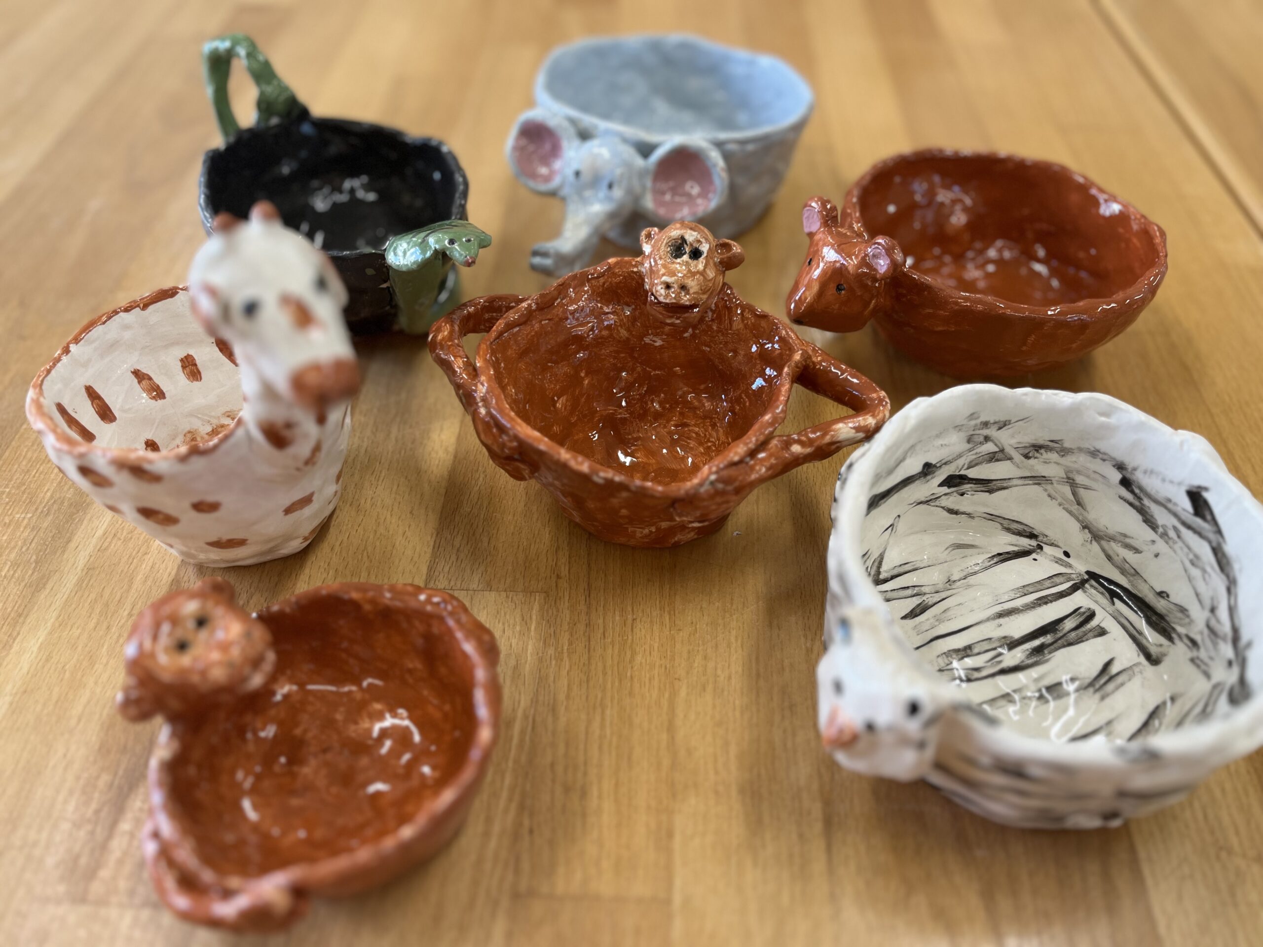 Kursinhalt: Du formst deine Tasse, Schale oder einen Teller. Du modellierst dein ganz persönliches Lieblingstier dazu, das dich dann bei jeder Mahlzeit begleitet. Da räckelt sich ein Drache als Henkel, eine Schlange schlängelt an deiner Tasse hoch, ein Löwengesicht blickt Dir in den Sirup oder Du trinkst aus einem Elefantenkopf… Alles ist möglich, deine Fantasie ist gefragt! Es wird bestimmt tierisch schön!