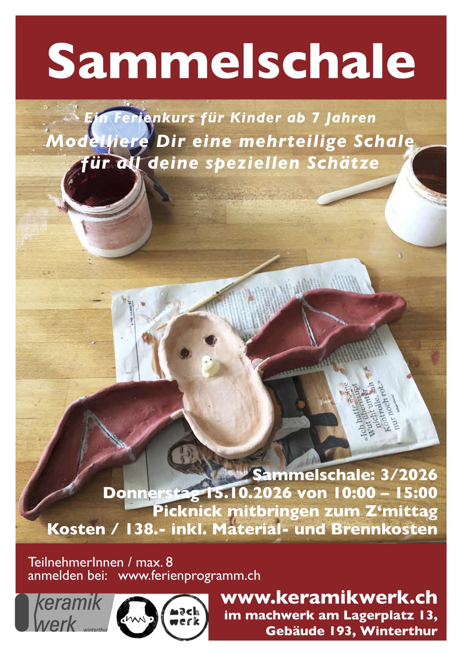 exkl. Material- und Brennkosten je nach Tonverbrauch (pro grosse Schale max. Sfr. 50.-).