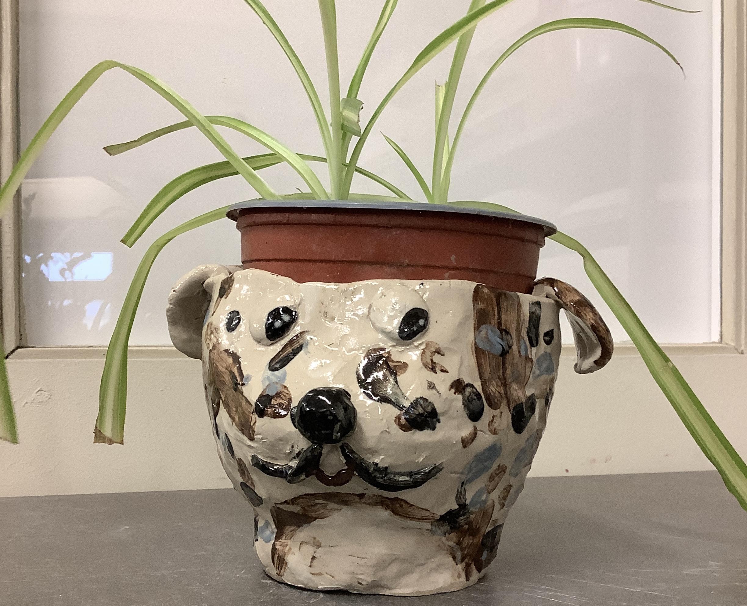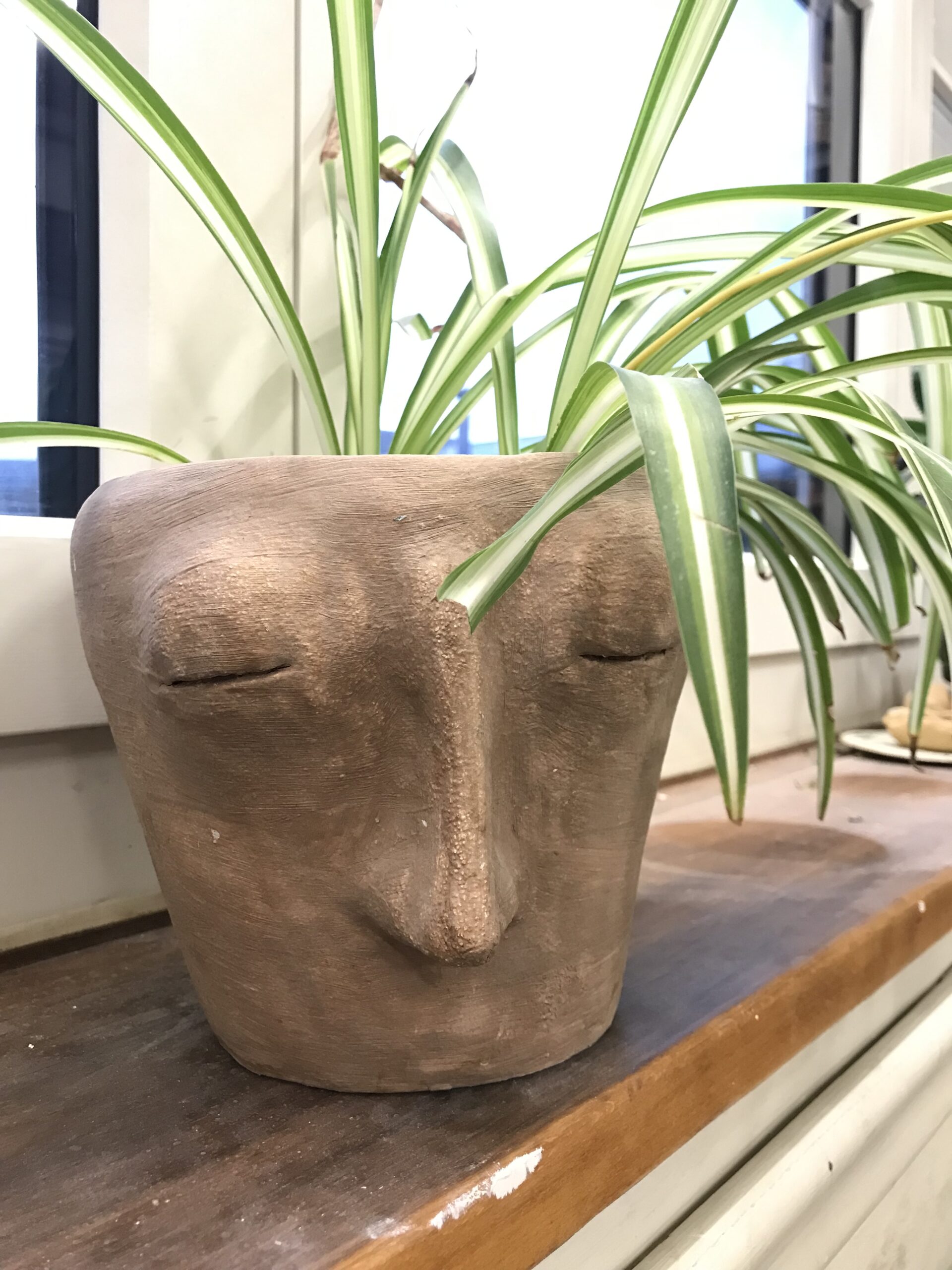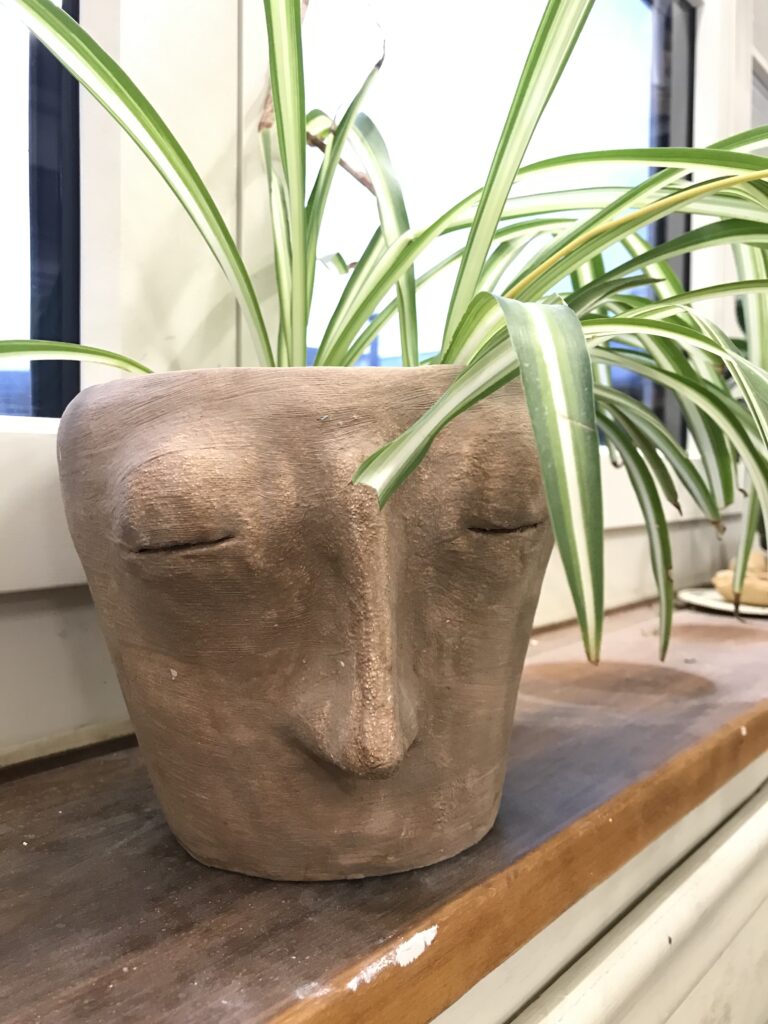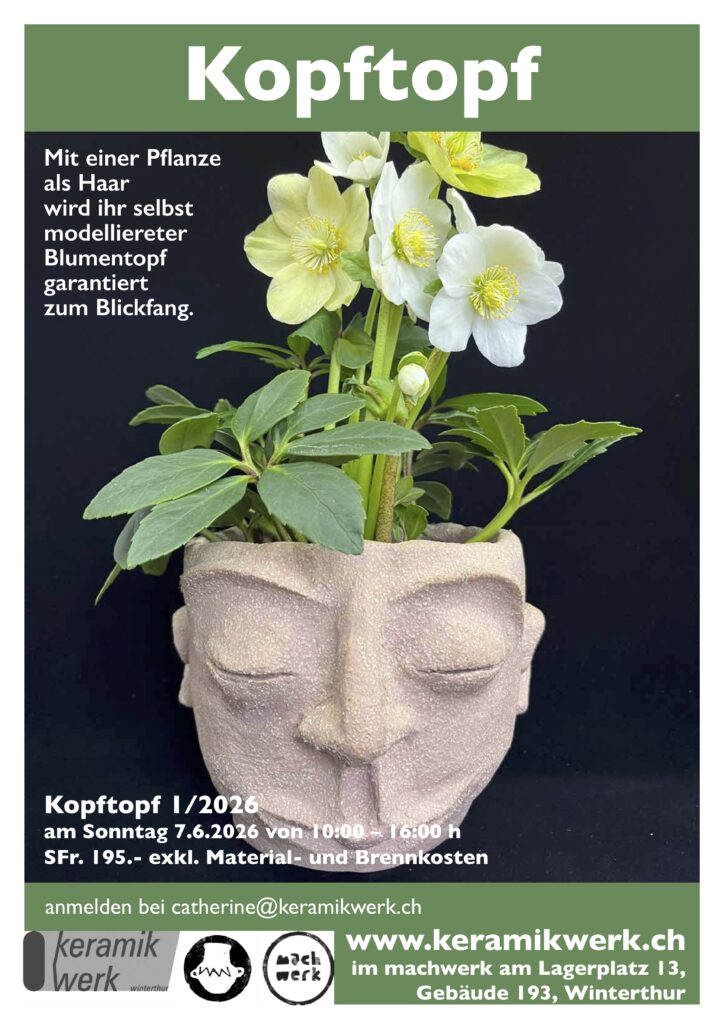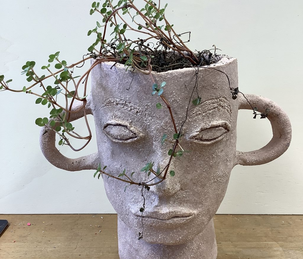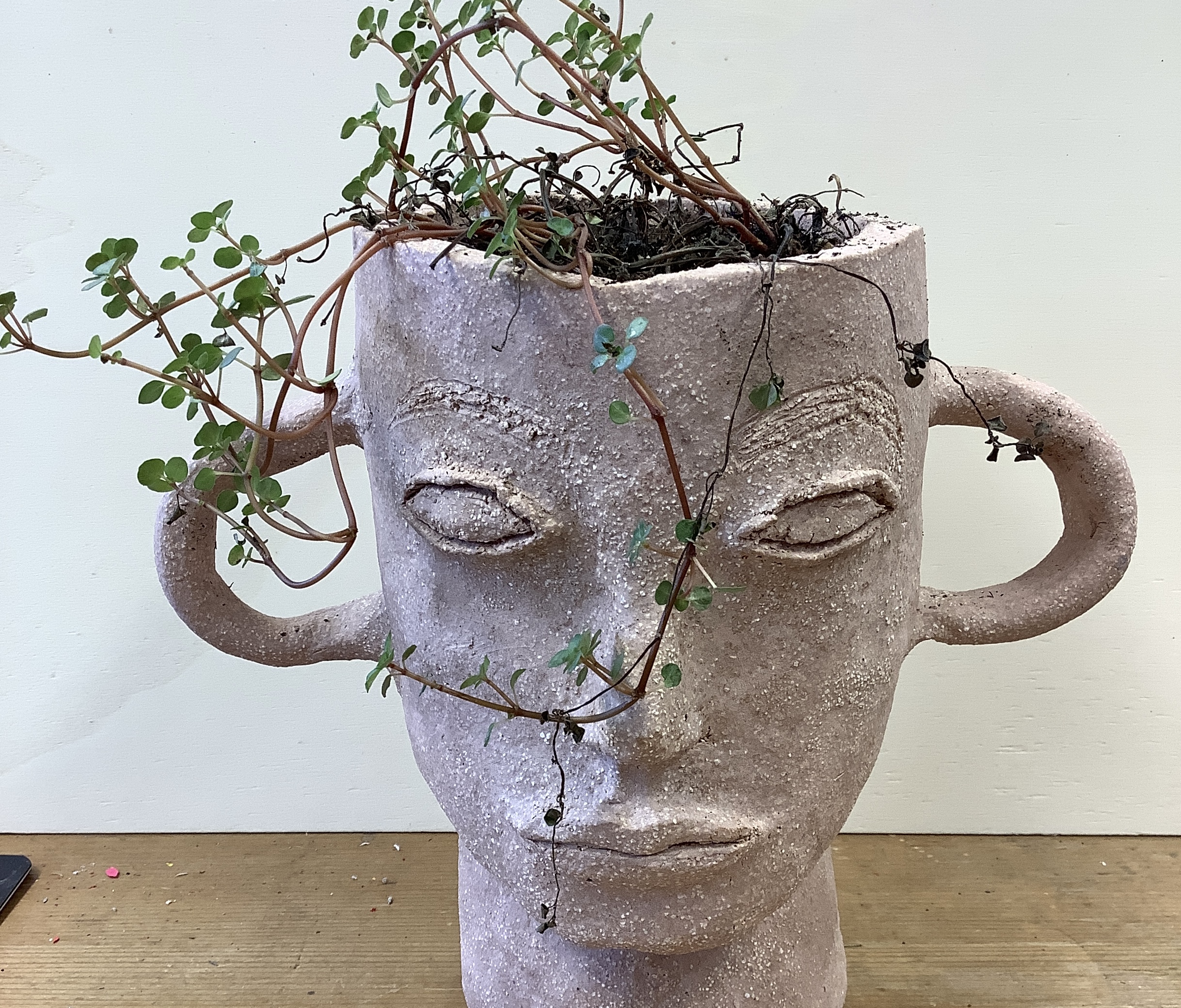 Wulst um Wulst wird der Topf zu einem Kopf. Danach formen wir Augen, Nase, Mund und Ohren, bis der Topf beinahe lebendig wirkt. Ein bisschen Farbe, vielleicht noch ein Lächeln – und schon hat Ihr Kopf die perfekte Gestalt und einen eigenen Charakter.