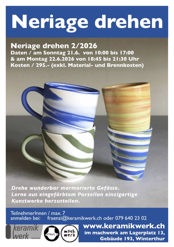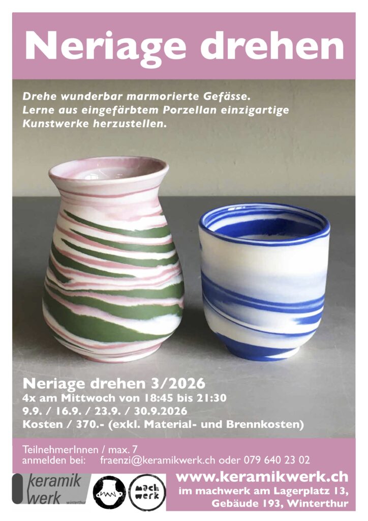 Du hast schon ein wenig Erfahrung an der Töpferscheibe & kannst zentrieren, aufbrechen & drehen? Dann bist du bereit für ein neues Abenteuer: Neriage!