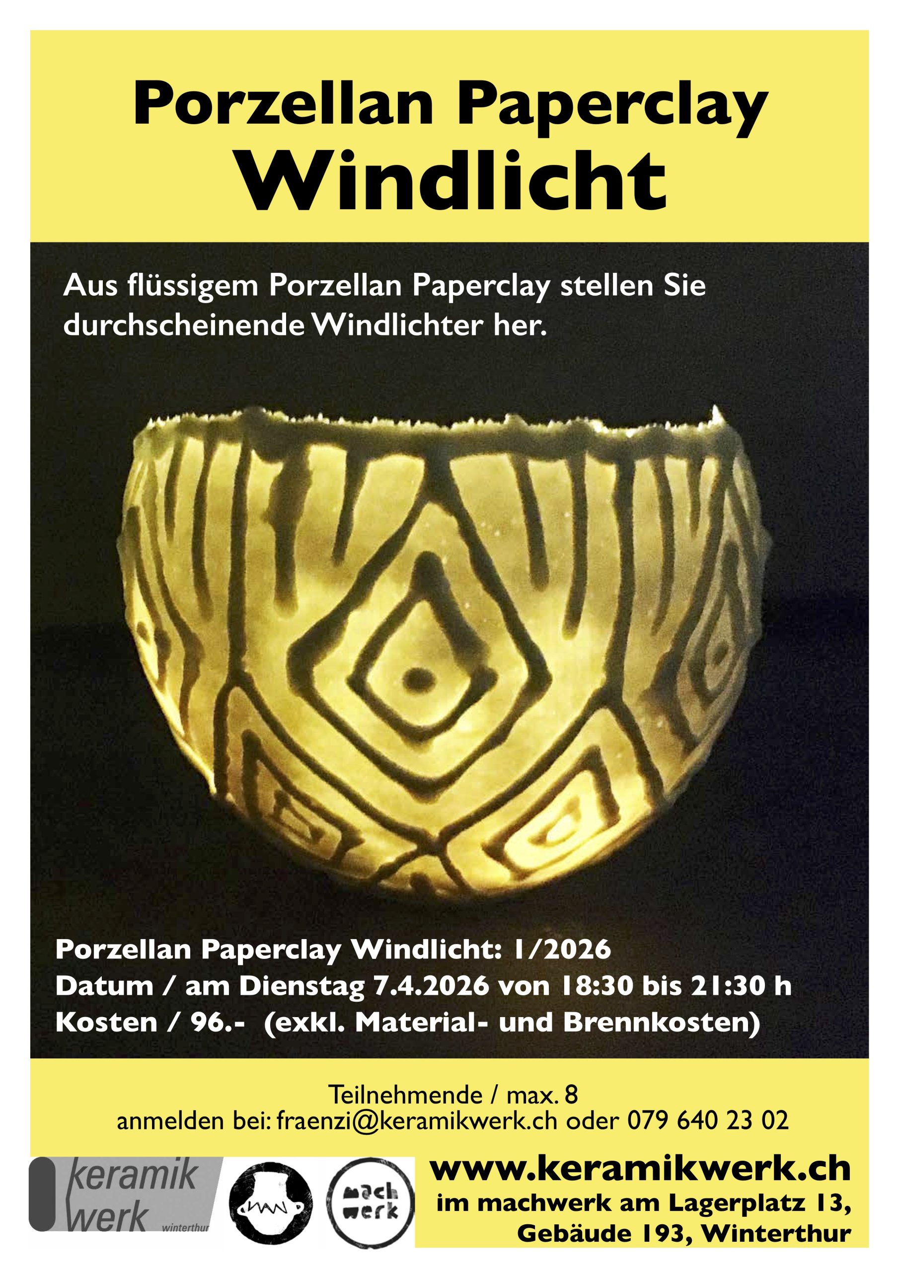 Anmeldung per Mail an: Fränzi Iff fraenzi(ät)keramikwerk.ch