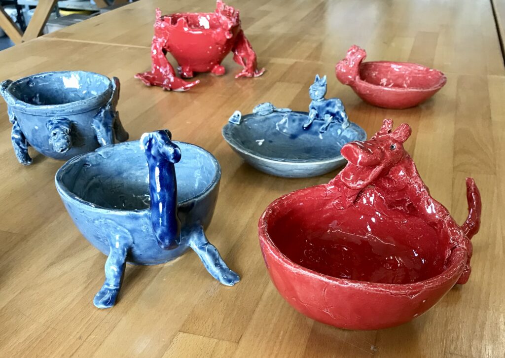 Kursbeschrieb: Wir gestalten lustige Zahnbecher aus Ton! Mit Händen und Fantasie formst du Becher mit Gesichtern, Tieren oder verrückten Grimassen. Augen, Nasen, Ohren oder Zungen – alles ist erlaubt, solange es Spaß macht. Beim Modellieren lernst du, wie aus Ton ein stabiler Becher entsteht, in dem später Zahnbürste und Zahnpasta Platz haben. Jeder Zahnbecher wird einzigartig und bringt gute Laune ins Badezimmer und vor allem beim Zähneputzen.