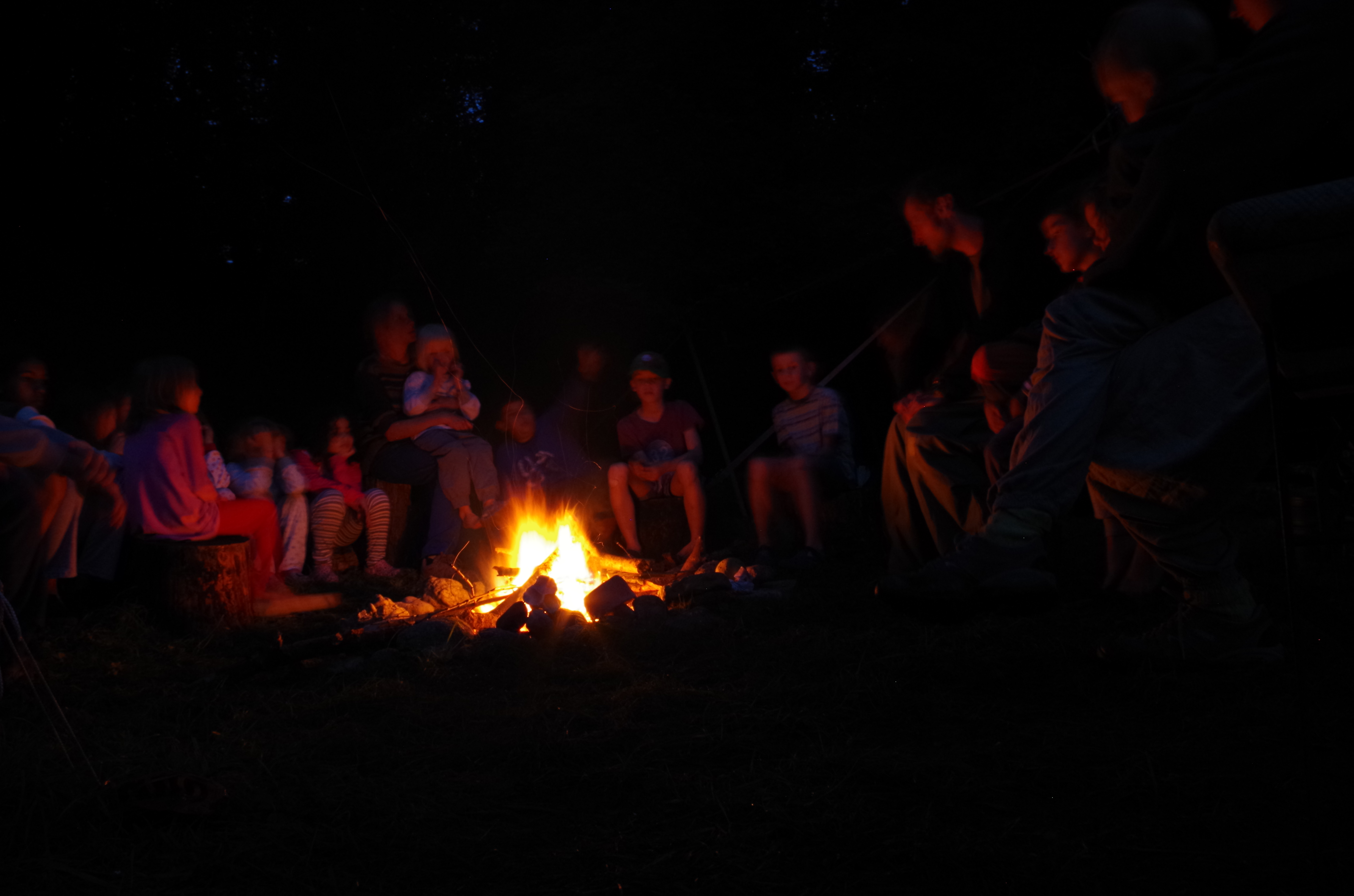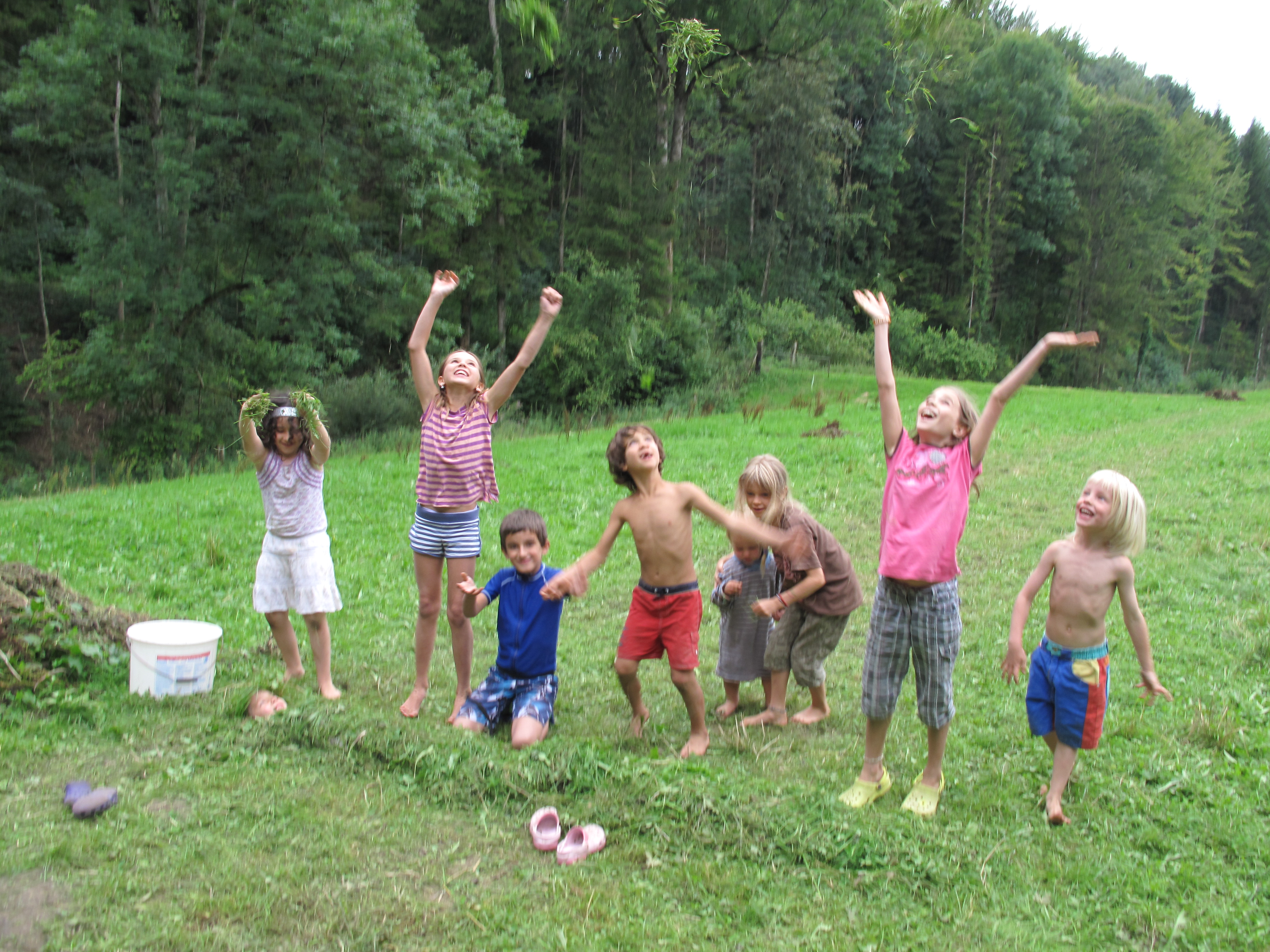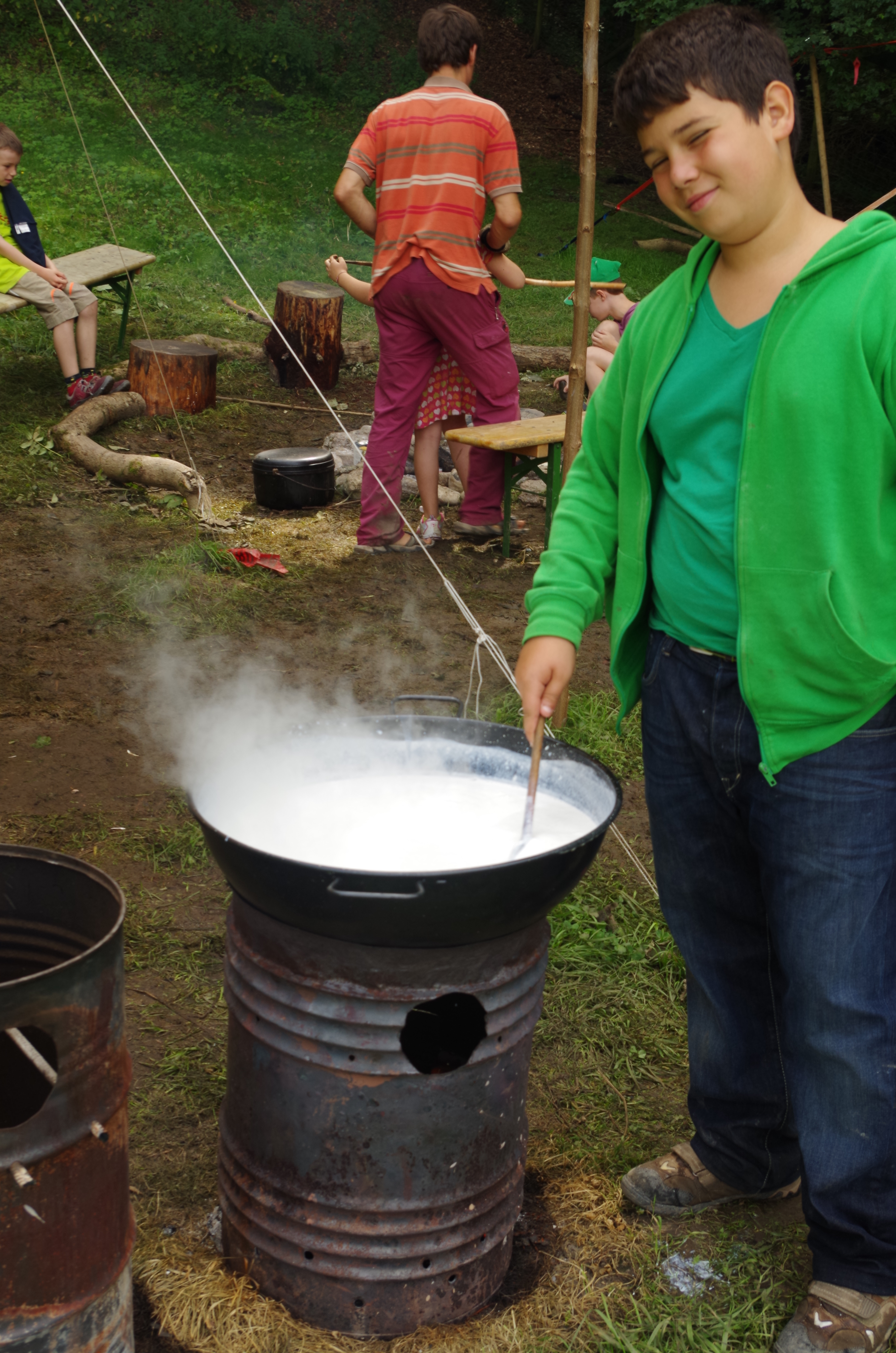 Das Übernachten und Kochen in der Natur ist ein wichtiges Element. Wir spielen, gestalten, rüsten und kochen, waschen ab, erfreuen uns an der Wärme des Feuers, wir erzählen Geschichten, singen. Wir erleben gemeinsam Zeit im Wald, am Feuer oder am Bach. Dabei gibt es auch Gelegenheit bei Bedarf, sich zurückzuziehen, einen Bad im eiskalten Bach zu geniessen oder im Gras ein Nickerchen zu machen. Oder als ganz wildes Wesen die Welt erzittern lassen.